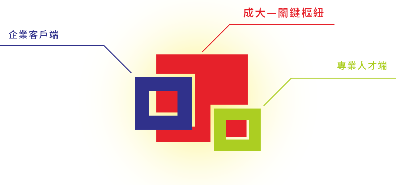 我們扮演著不可或缺的「紅色樞紐」,以專業、信賴與效率主動且穩固地連結企業需求與人才價值,形成 1+1 > 2 的共贏結構
